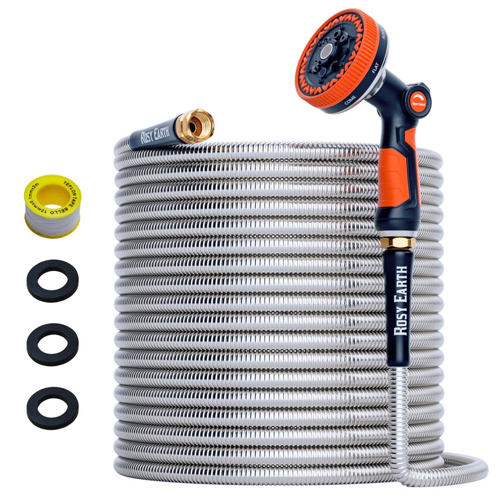 - Versatile & User-Friendly: Built-in leak-proof gaskets and thread seal tape ensure a tight seal. The non-slip rubber handle with thumb control allows easy water flow adjustment. This stainless steel with sprayer nozzle is ideal for gardening, washing, and pet bathing.